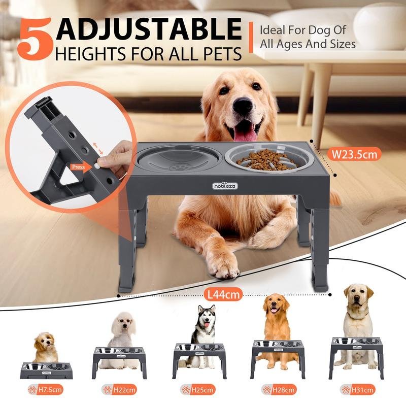 Se puede ajustar en 5 alturas diferentes, ideal para perros de todas las tallas.