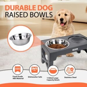 | Componentes incluidos | cuenco de acero inoxidable de 1100 ml, cuenco de alimentación lenta de 800 ml, cuenco de agua flotante de 800 ml, y gran soporte para comida para perros |